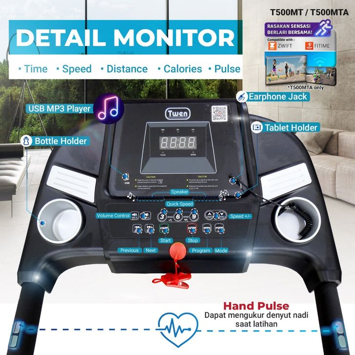 Treadmill Treadmill Original Twen Treadmill T500MT T500MTA / Treadmil Electric Low Watt / Treadmill Elektrik / Alat Ola