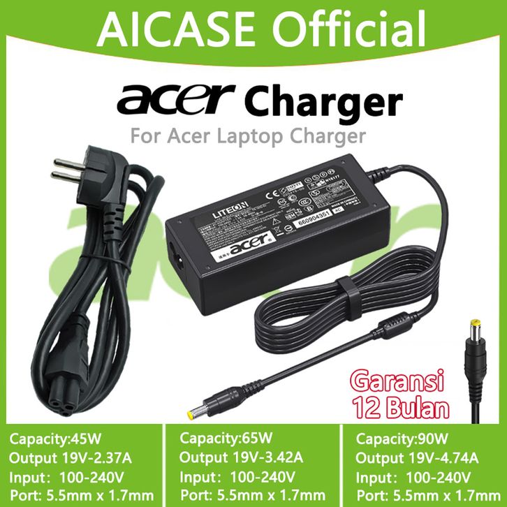AICASC-100% ORIGINAL ACER LAPTOP ADAPTOR CHARGER ORI 45W 65W 19V-2.37A 3.42A DC 5.5*1.7MM CASAN EMBS BIG PLUG ASPIRE