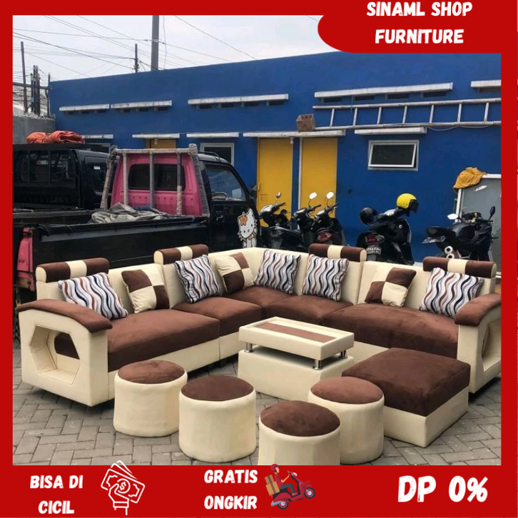 sofa ruang tamu Sofa Eksklusif Sudut Jumbo U + Puff Davinci Minimalis + Meja (Promo Harga)