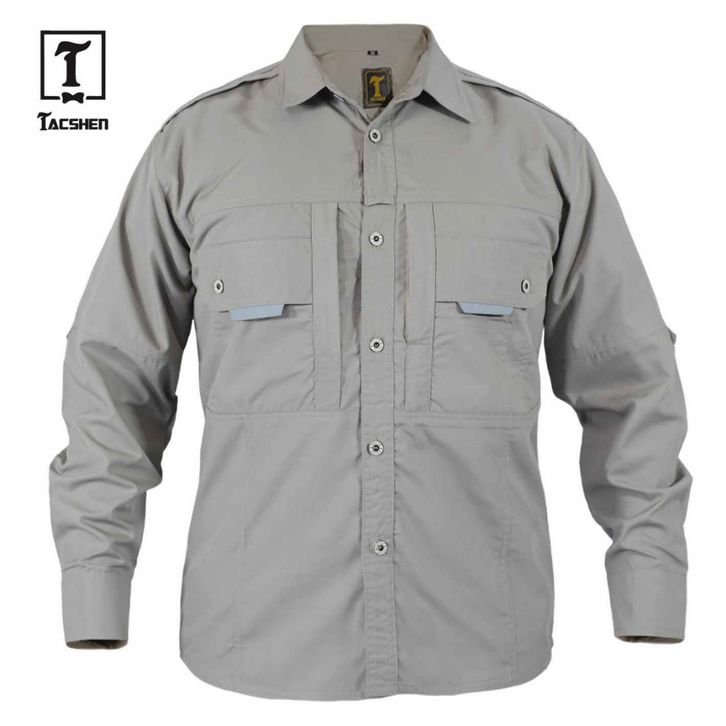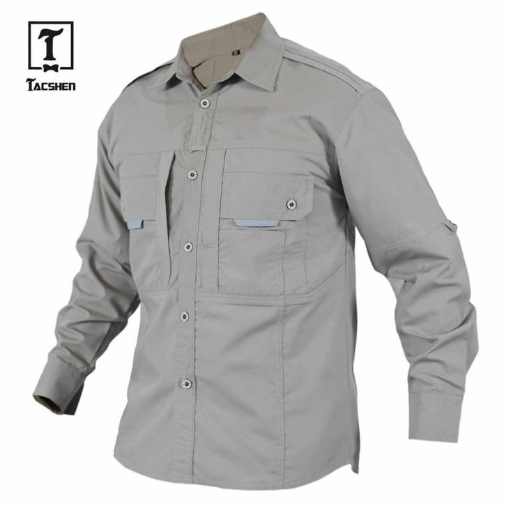 TACSHEN - Kemeja Tactical Ammo Pria Lengan Panjang Cream