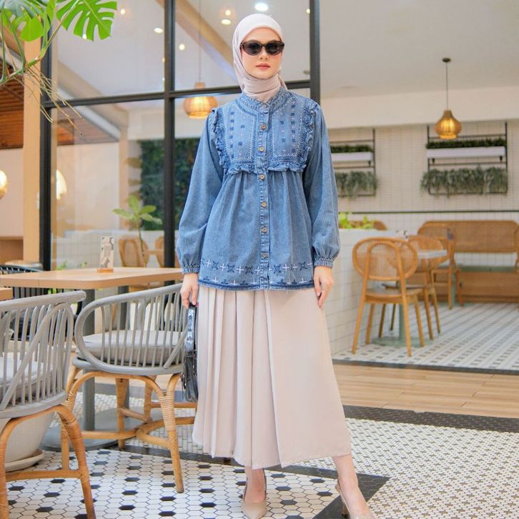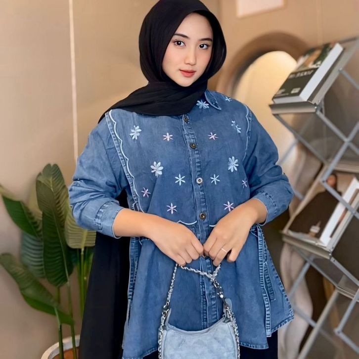 LADYORA - BEVERLY Kemeja Jeans Bordir Wanita