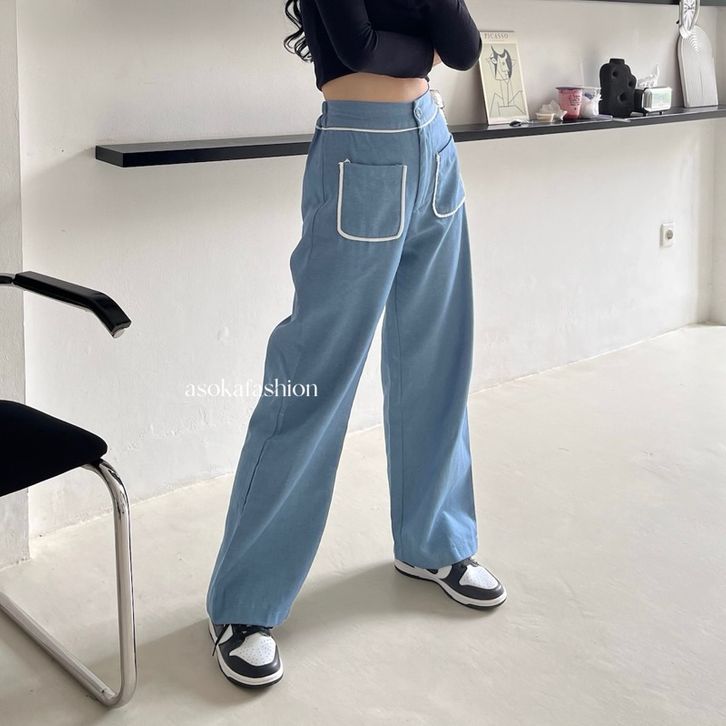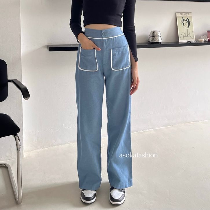 ASOKA Yuri Pants 3112 - Celana Kulot Wanita - Trouser High Waist - Loose Pants Front Pocket