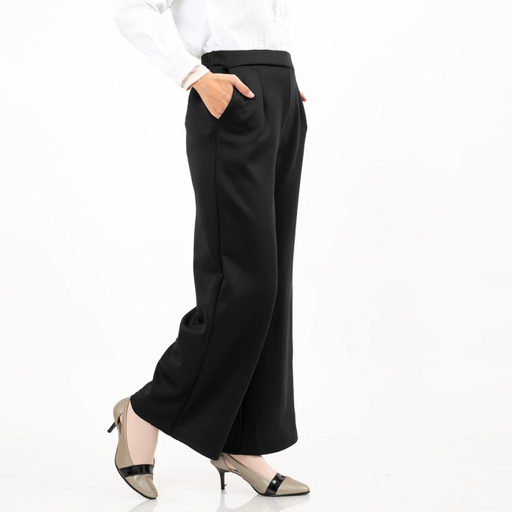 HaymeeIDN - Celana Kulot Jumbo Bawahan Highwaist Wanita Bawahan Kulot Premium Bahan Scuba -Black