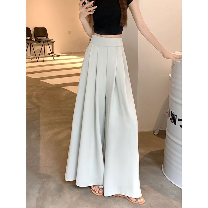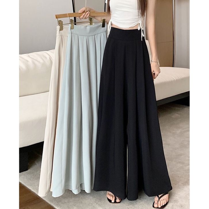 Celana Kulot Pinggang Tinggi Versi Korea, Celana Longgar Kasual Lebar Kaki, Celana Kulot Kasual Fashion Wanita