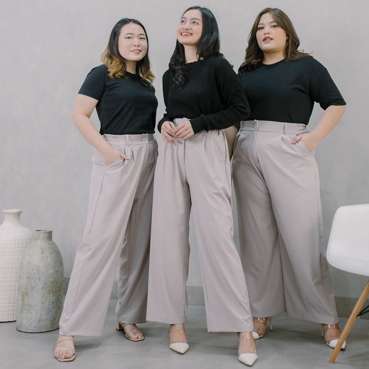 IE.DEM0DE Aerum Celana Panjang Wanita Kulot Kerja Kantor Jumbo Big Size Pants Bahan Allya Earth9rey