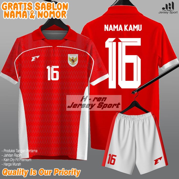 Sablon Nama Nomor Punggung Jersey Setelan Timnas Grade Terbaru Costum Olahraga Futsal Volly Bola