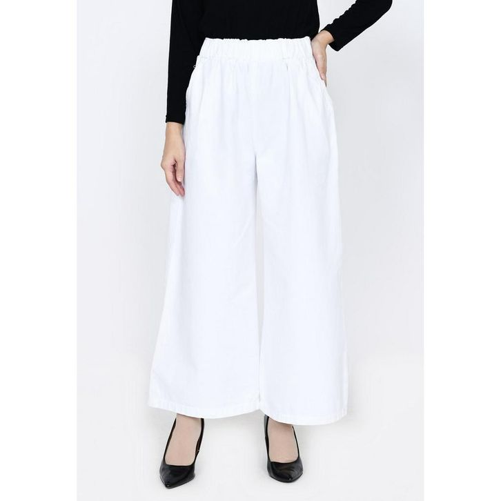 Celana Kulot Muslim Wanita Jeans Putih Tebal Panjang 94cm fit BB 46-80kg Pinggang Karet XL Lezahrasignature Kulot Kell