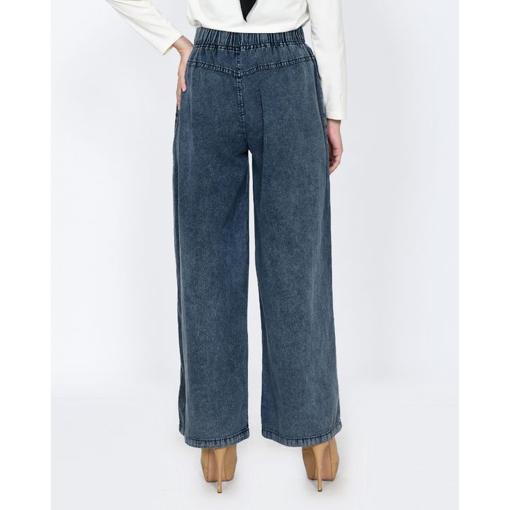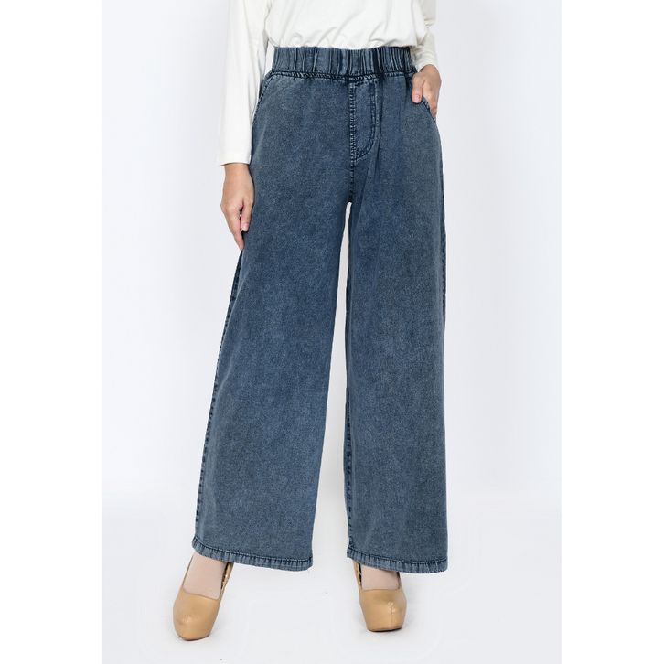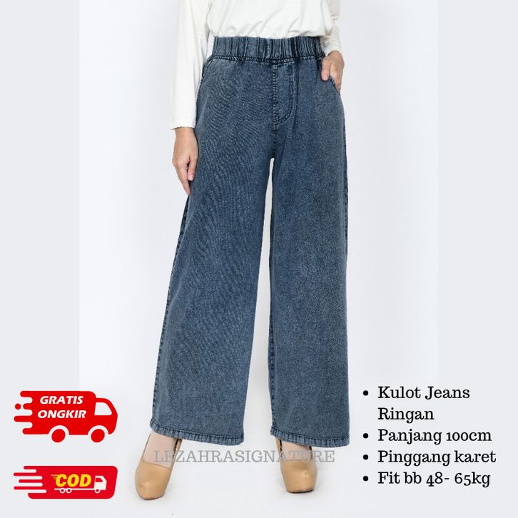 Celana Kulot Jeans Muslim Wanita Panjang 100cm Pinggang karet FIT 48-65 Kg LEZAHRASIGNATURE Cullote Kelly Snowblack