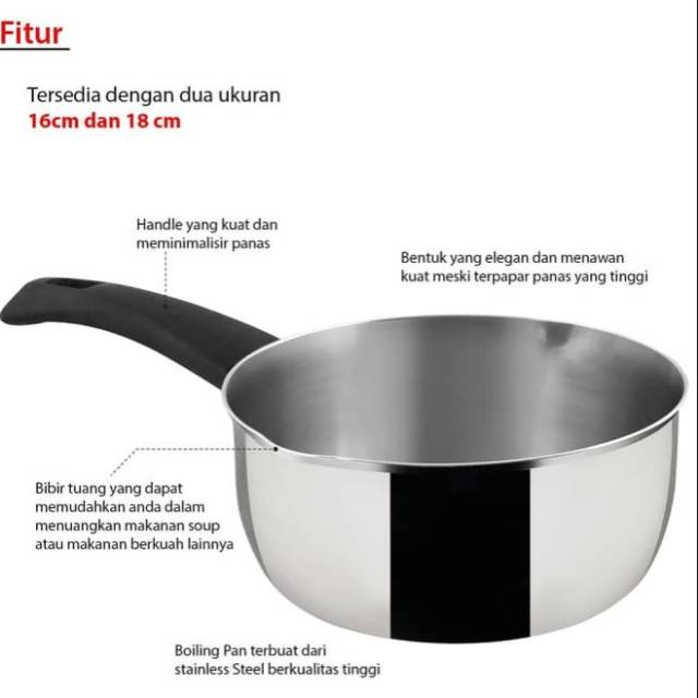 Cookville Boiling Pan / Panci Susu Stainless 16cm / 18cm