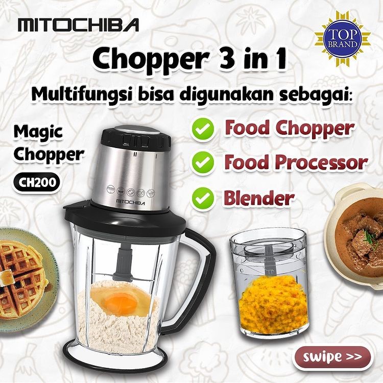CHOPPER MITOCHIBA CH200 2 LITER SERBAGUNA PENCINCANG DAGING BUMBU MASAKAN MULTIFUNGSI ORIGINAL TOP BRAND