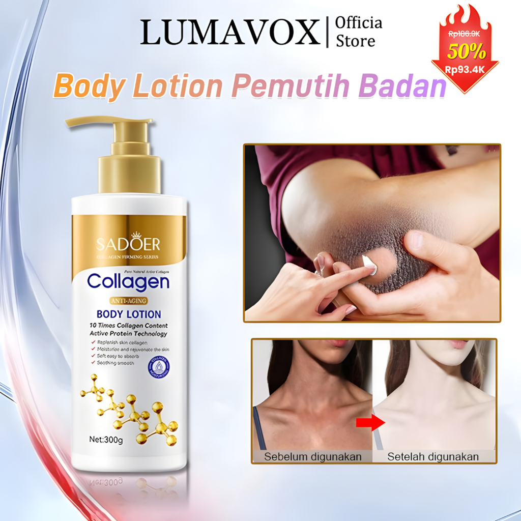 BODY LOTION PEMUTIH BADAN LUMAVOX COLLAGEN 300ML PERMANEN AMPUH DAN CEPAT MENCERAHKAN KULIT BADAN MENGATASI KULIT KERING