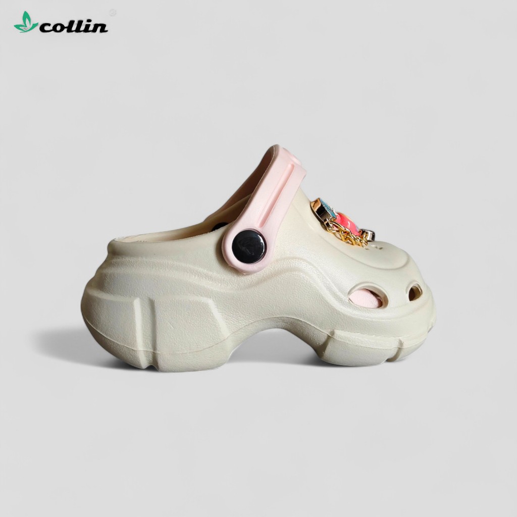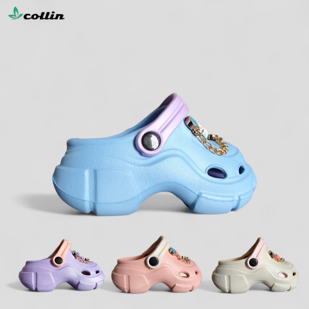 COLLIN Sandal Tinggi Baim Kodok Wedges Karet EVA Anak Kecil Perempuan Jibbitz Pastel B6307-K2