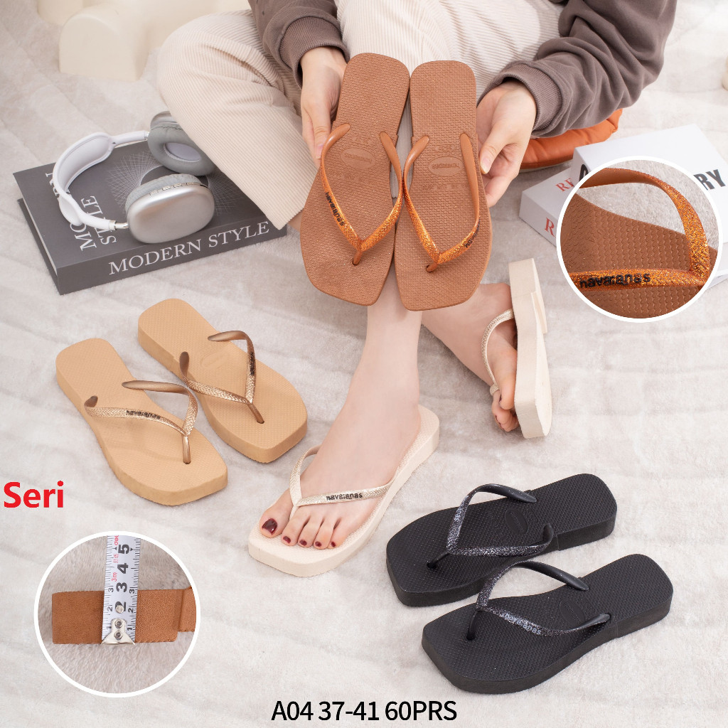 Sandal Jepit Santai Pantai Wanita Sendal Simple Jelly Karet Flat Glitter Berkualitas Import Balance A04