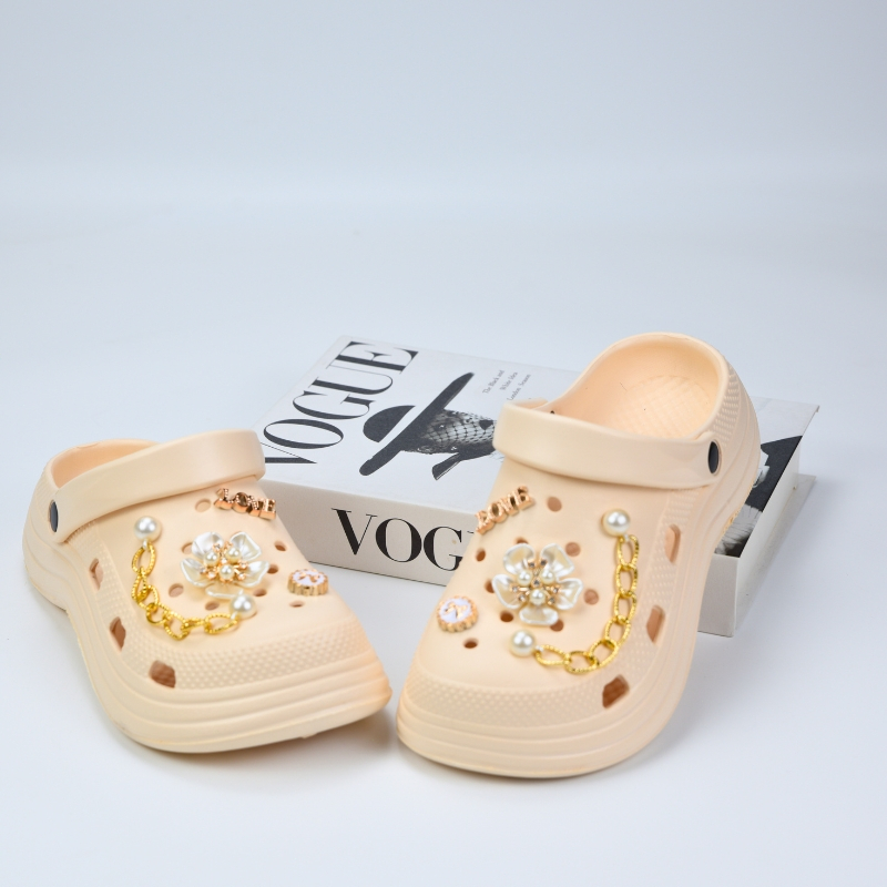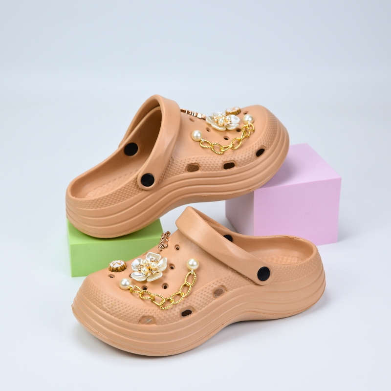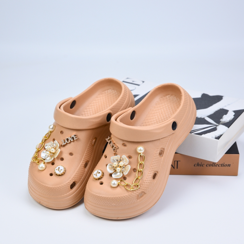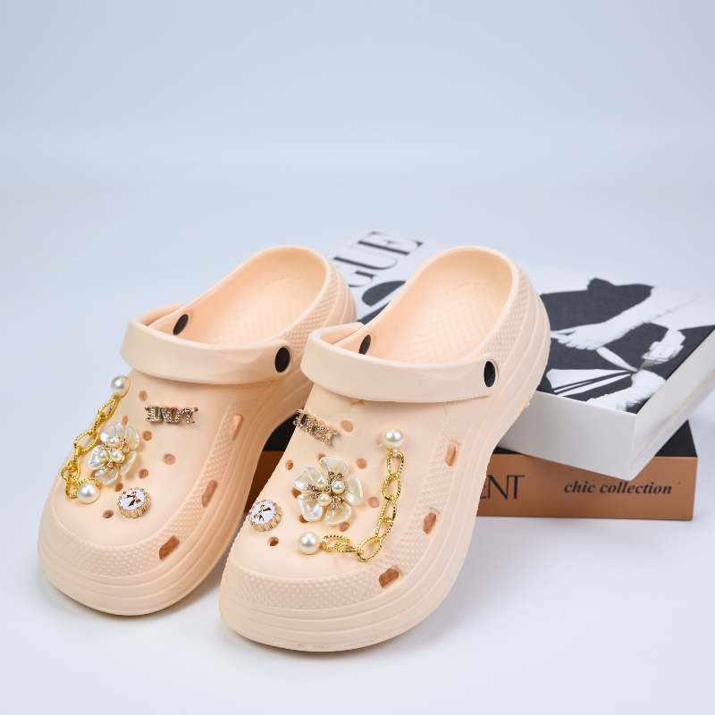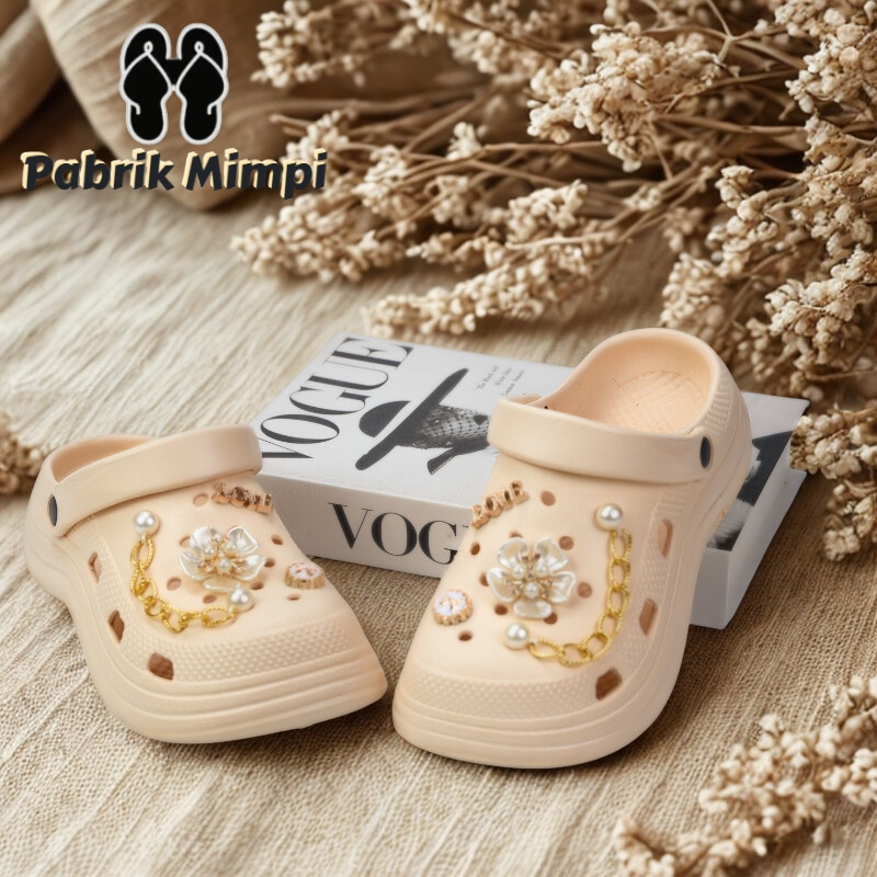 Sandal Baim Fuji & Wedges Wanita Dewasa Kodok Jibitz Rabit Tali Belakang el Kekininan Karet Ringan Anti Licin