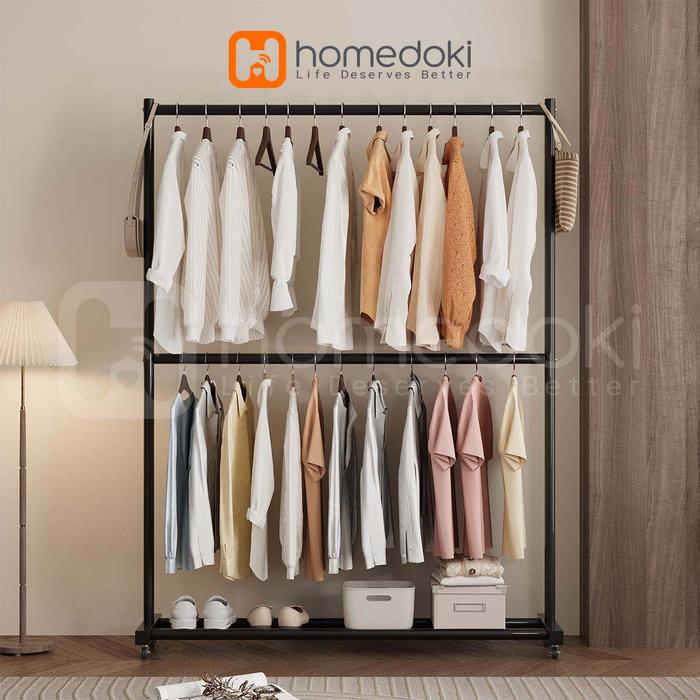HOMEDOKI RAK GANTUNGAN BAJU BESI / STAND HANGER / GAWANG BAJU / JEMURAN BAJU PORTABLE - 150200-HITAM