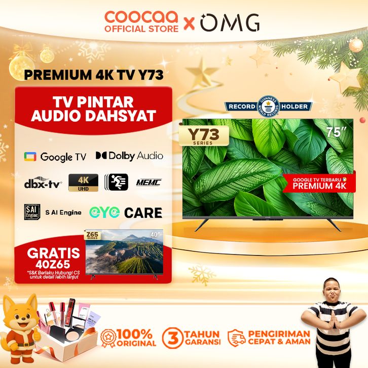 TERBARU COOCAA TV 75Y73 - 4K GoogleTV - S AI Engine - MEMC - Dolby Audio - HDR10/HLG - Far Field Voice Control (75Y73)