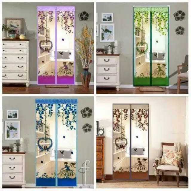 Tirai Magnet Anti Nyamuk Tirai Pintu Gorden Magnet Kelambu Pintu Motif