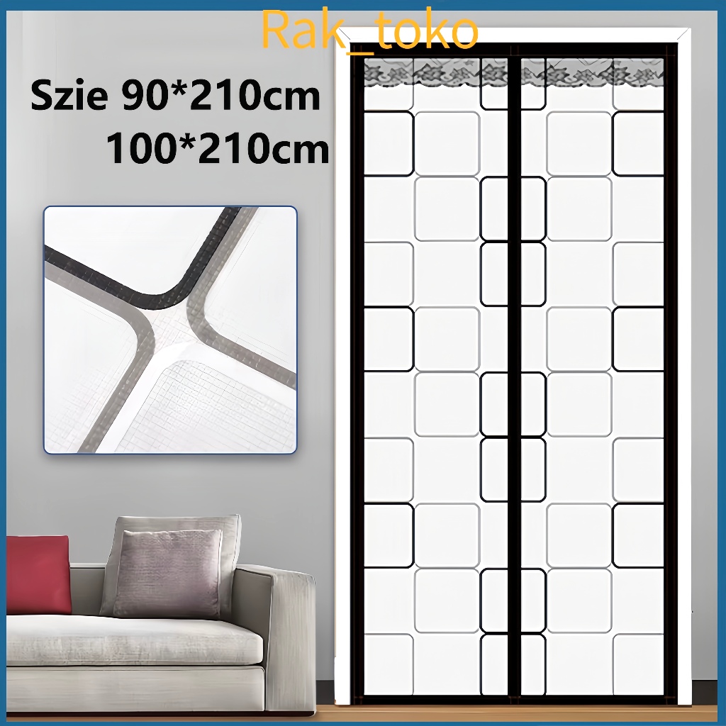 Layar Mesh Penutupan Otomatis/ Tirai Pintu kamar Motif Anti Nyamuk Size 210*90/210*100cm Tirai Magnet