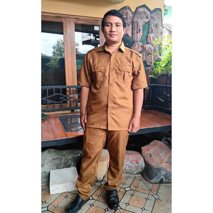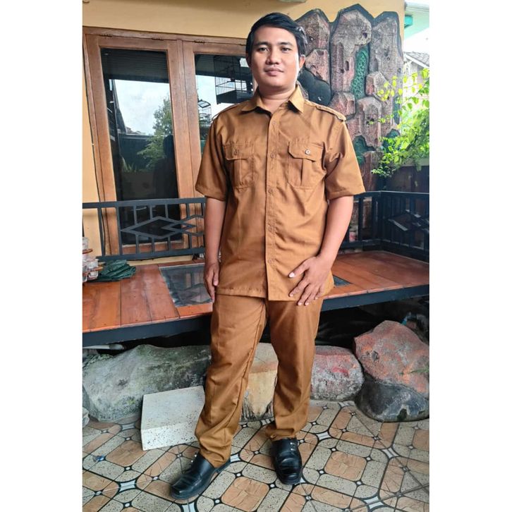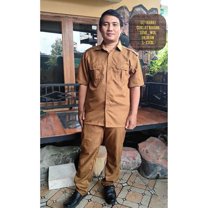 SATU SET Baju Khaki coklat Pria Lengan PENDEK /Seragam PNS pria Lengan PENDEK / Baju Dinas Pemda / Baju PDH coklat Pria