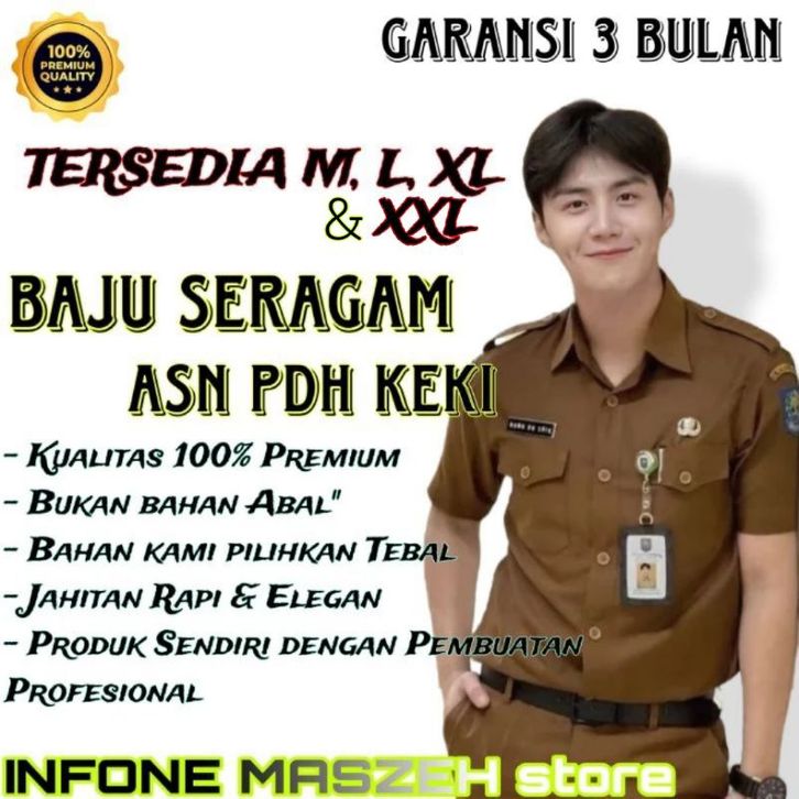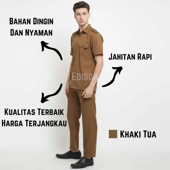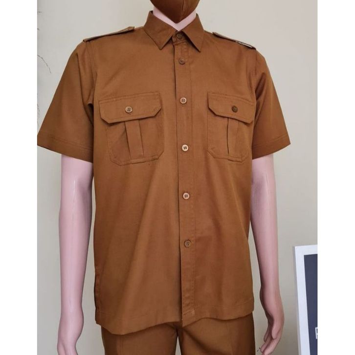 Promo Setelan Seragam Pemda PNS/ASN PDH Pria 100 Premium Baju & Celana - Bahan Tebal Cokelat Khaki Lengan Pendek