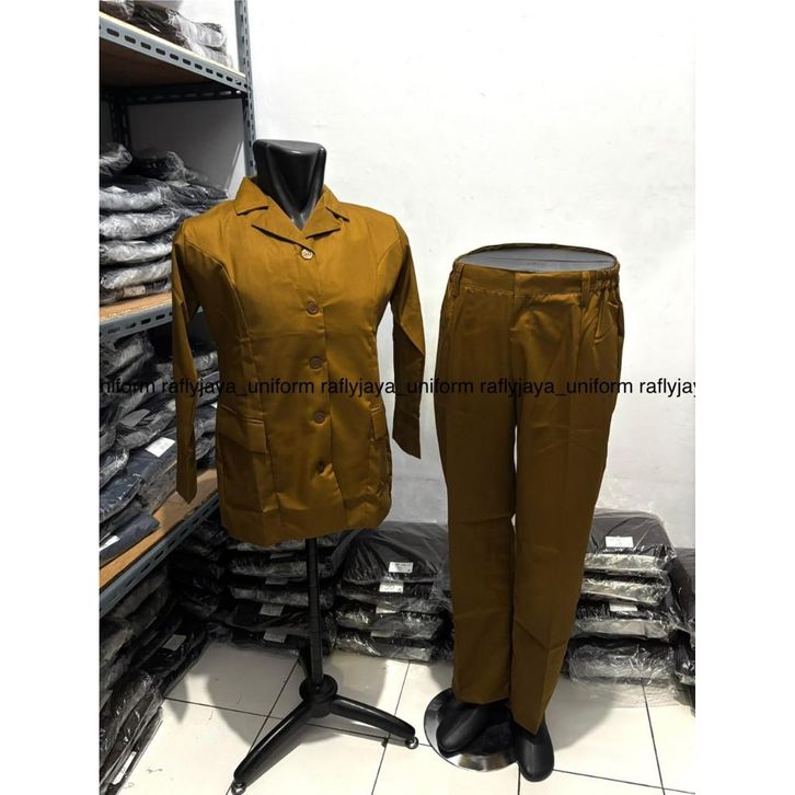 Seragam Khaki PNS - Baju Khaki Wanita Bahan Katun Wol Stelan Rok Celana - Baju PNS CWE - Rafly Jaya