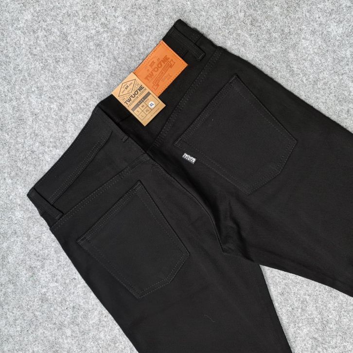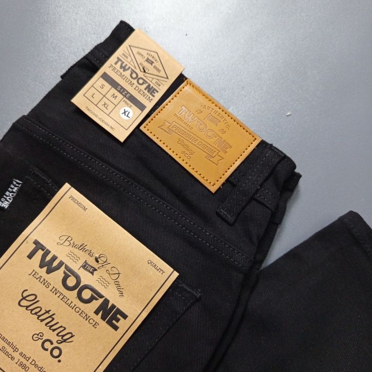 TWO ONE Celana Jeans Panjang Pria Slim Fit Denim Stretch Hitam Pekat