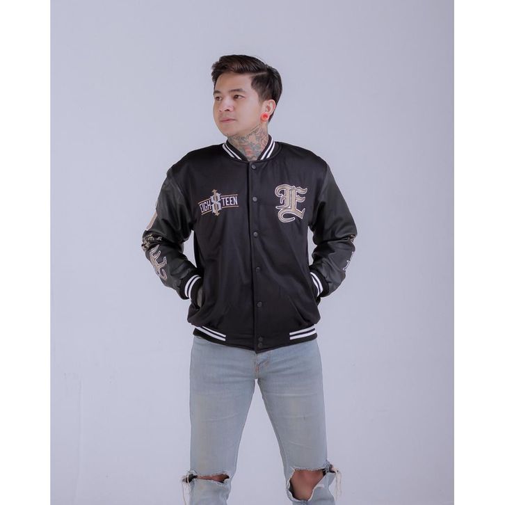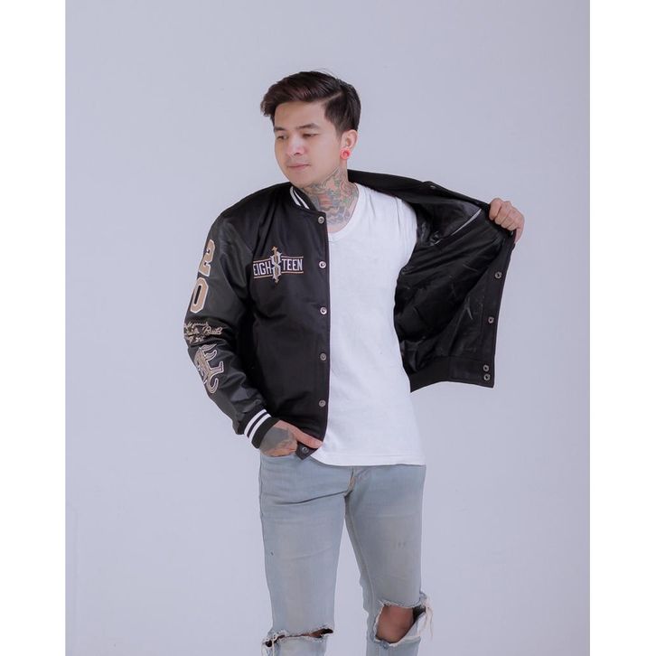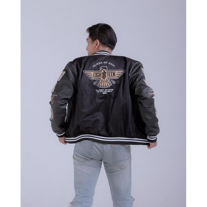 JAKET VARSITY KOMBINASI TANGAN KULIT EIGHTEEN FULL BORDIR TERLARIS