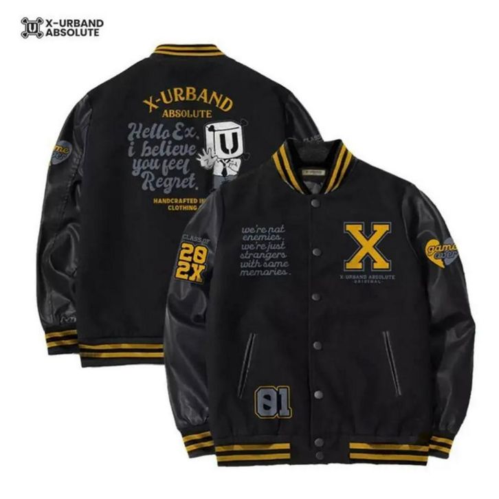 JAKET BASEBALLL VARSITY PRIA DAN WANIT ATASAN CASUAL UNISEX TERLARIS TANGAN KULIT