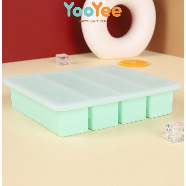 Yooyee Cetakan Es Batu MPASI (4 PERSEGI) Silicon Silikon Ice Cube Tray Tutup