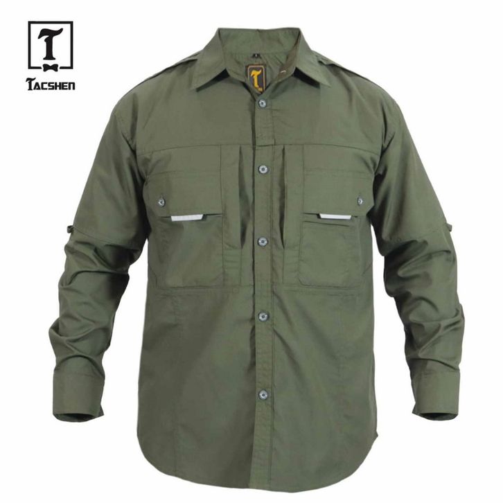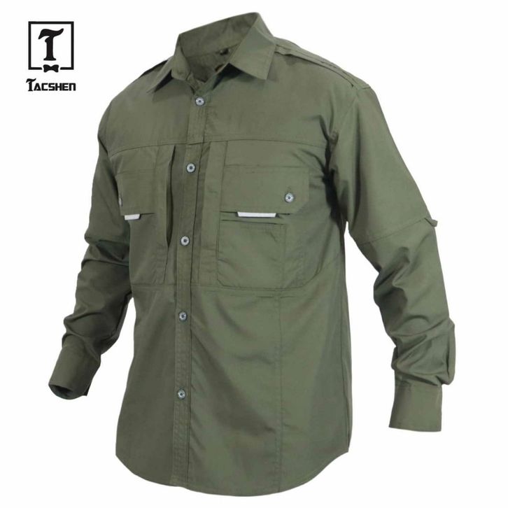 TACSHEN - Kemeja Tactical Ammo Pria Lengan Panjang Army