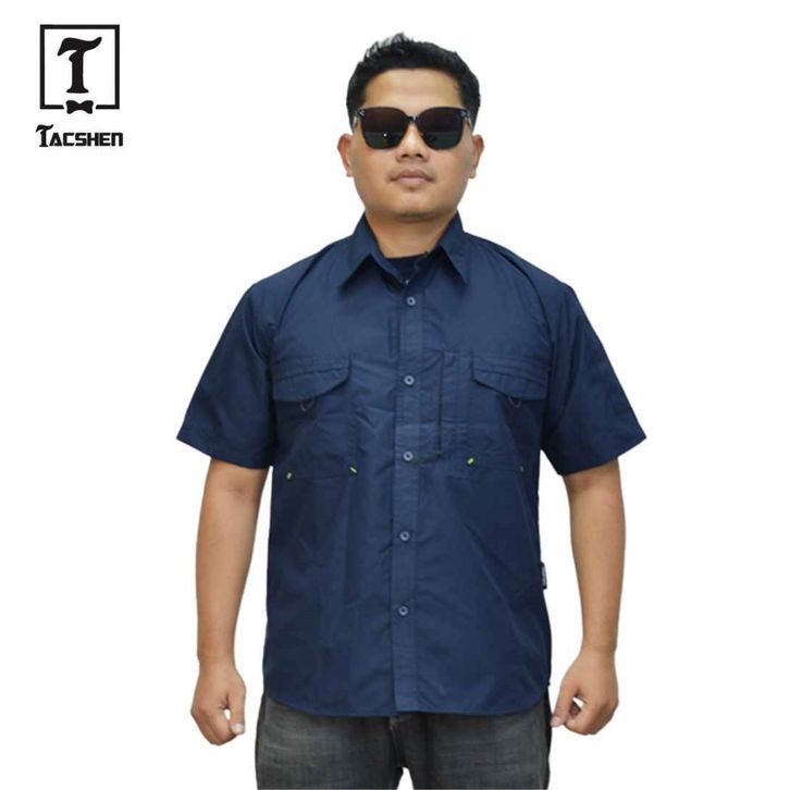 TACSHEN - Kemeja Pendek Seri Margas Navy Quickdry Nyaman & Tahan Lama