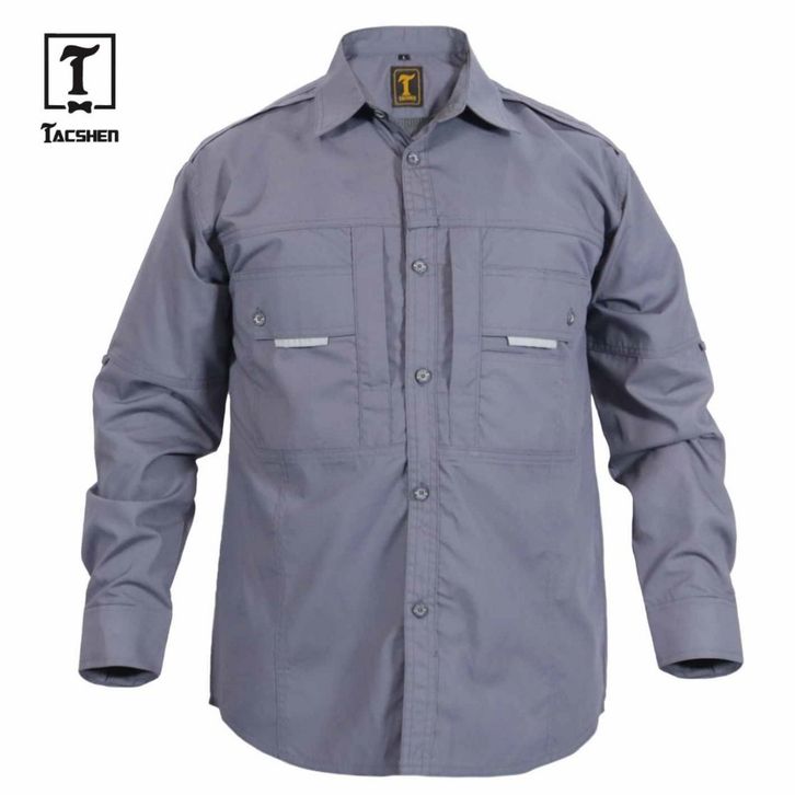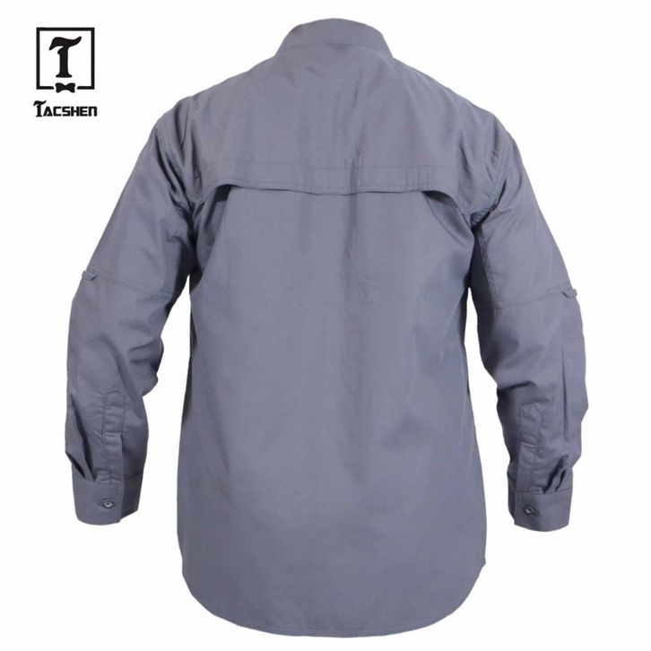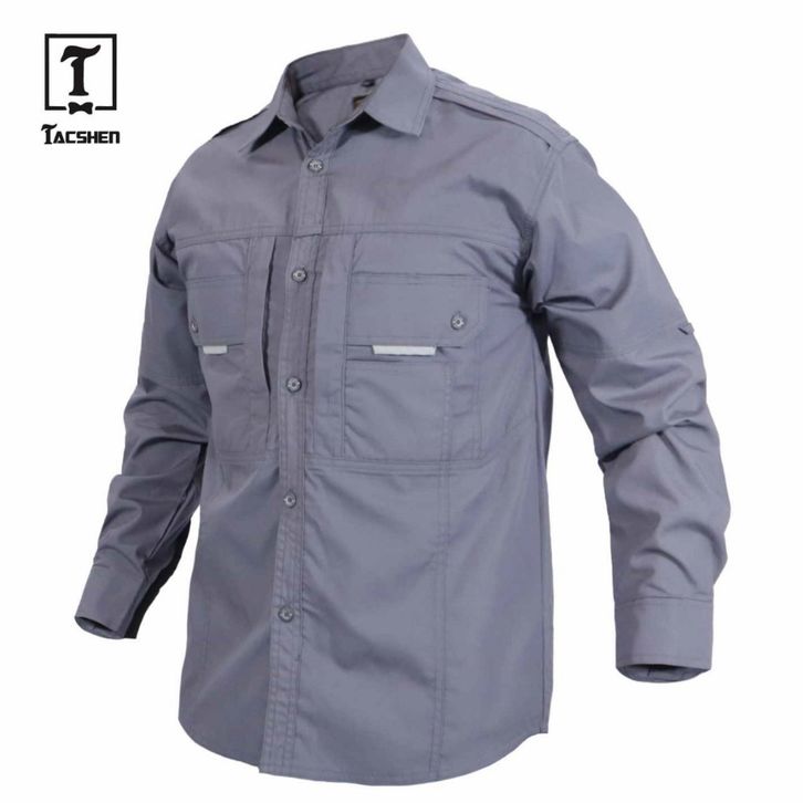 TACSHEN - Kemeja Tactical Lengan Panjang Pria Lapangan Abu Tua