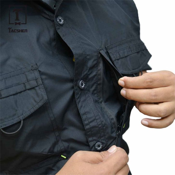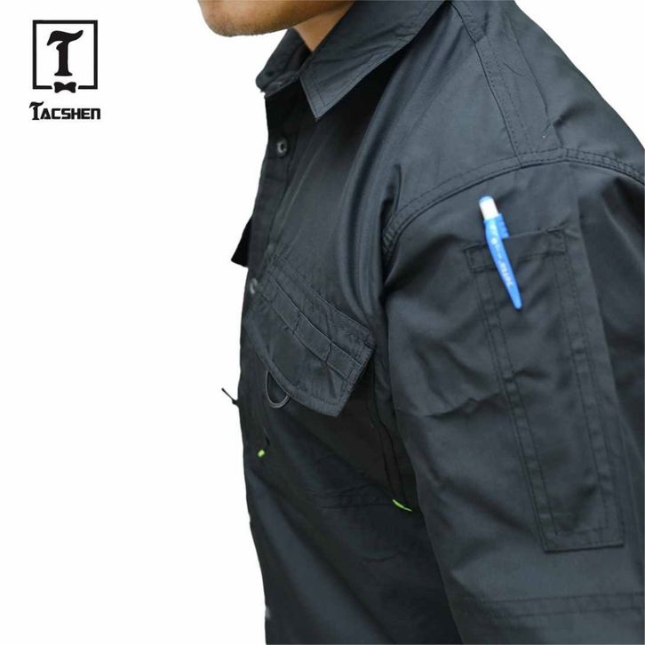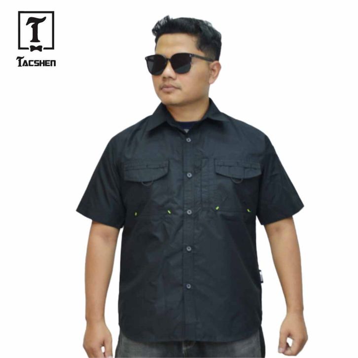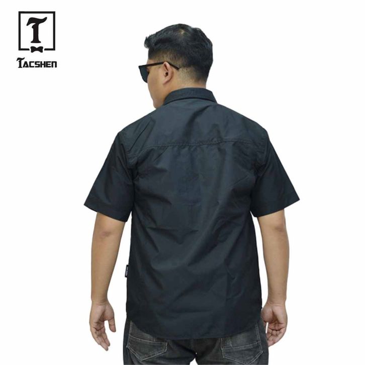 TACSHEN - Kemeja Pendek Seri Margas Black Quickdry Nyaman & Tahan Lama