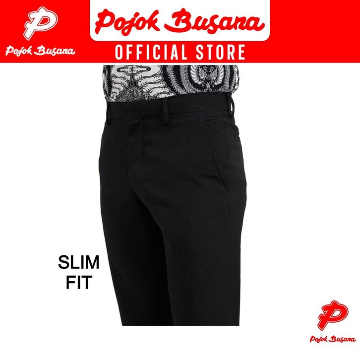 Pojok Busana Celana Panjang Formal Alisan Slim Fit Pria - Celana Kerja Bahan Cowok Sopan - Hitam