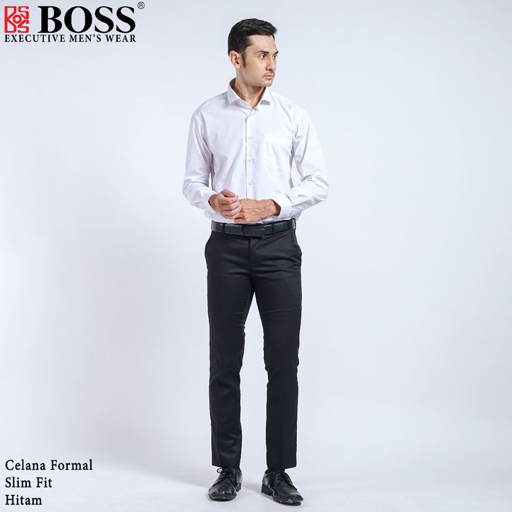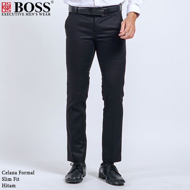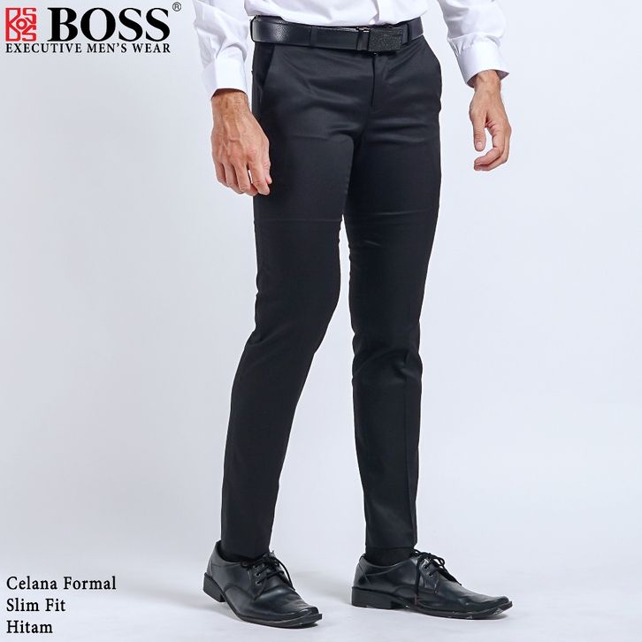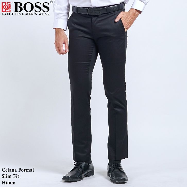 BOSS Celana Panjang Pria Formal Slim Fit HT Hitam