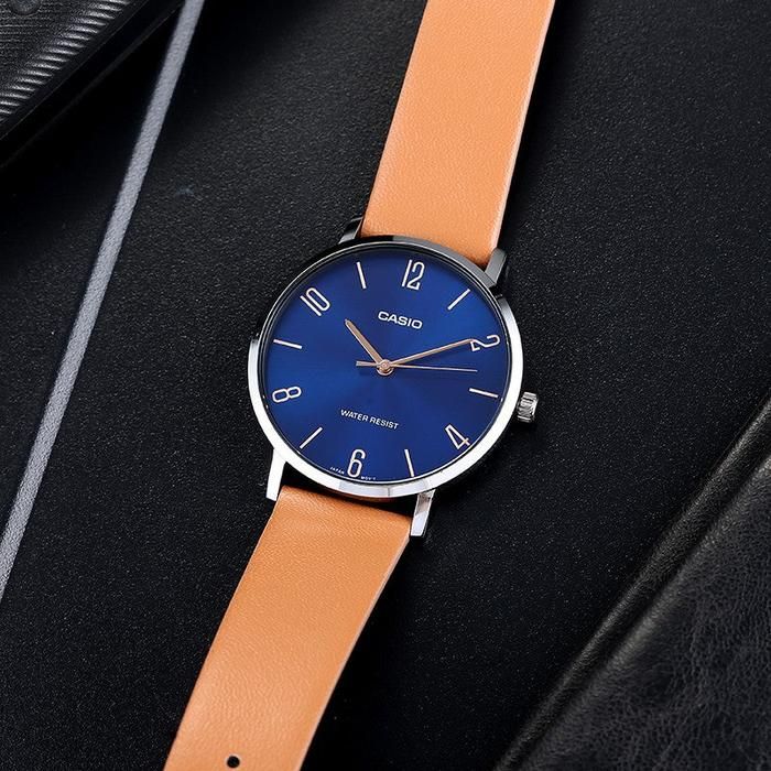 Jam Tangan Pria CASIO MTP-VT01L-2B2UDF Analog Tali Kulit - MTPVT01L