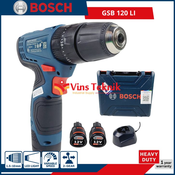 Bor Baterai Cordless Impact Drill 12V GSB120LI BOSCH GSB 120 LI + 33Pcs Xline