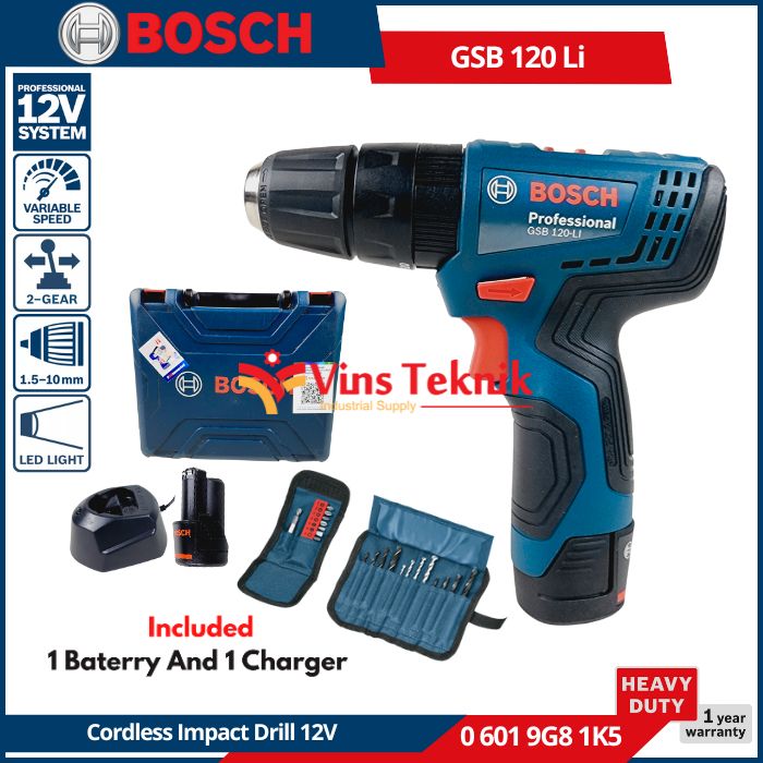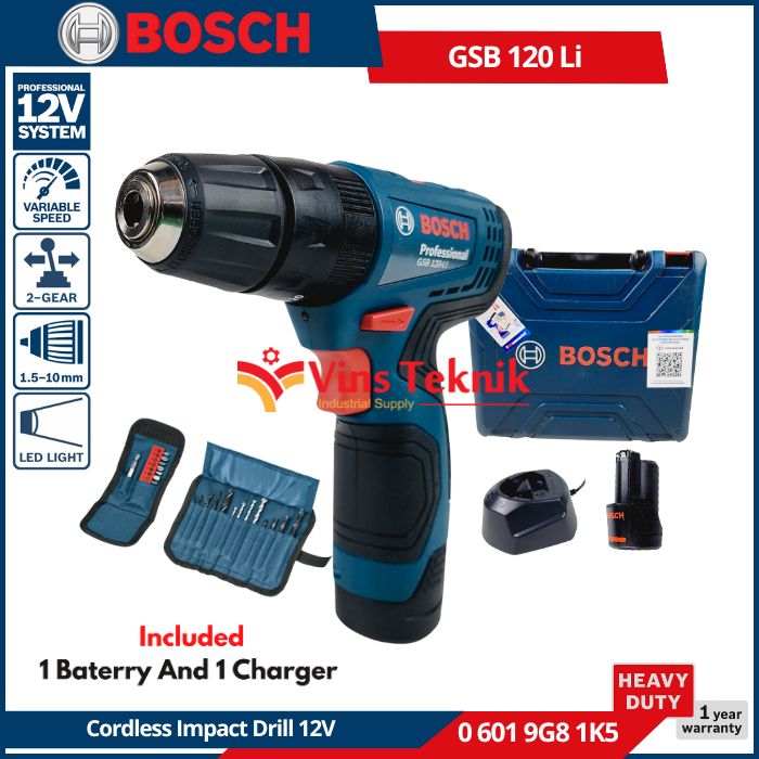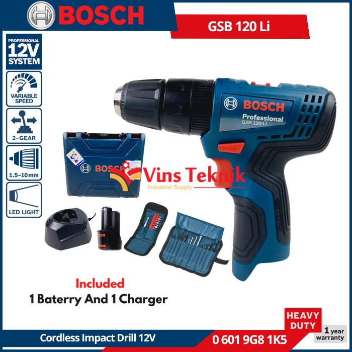 Mesin Bor Baterai Cordless Impact Drill 12V GSB120LI BOSCH GSB 120 LI 1 Baterai