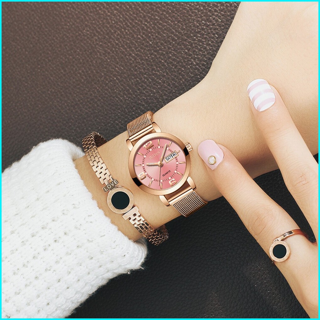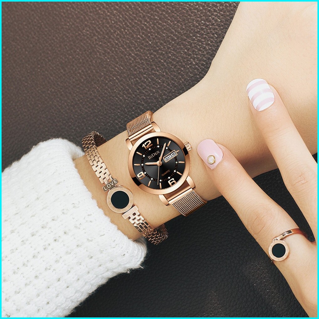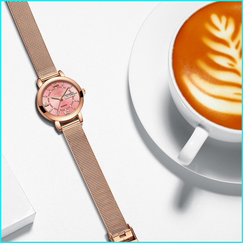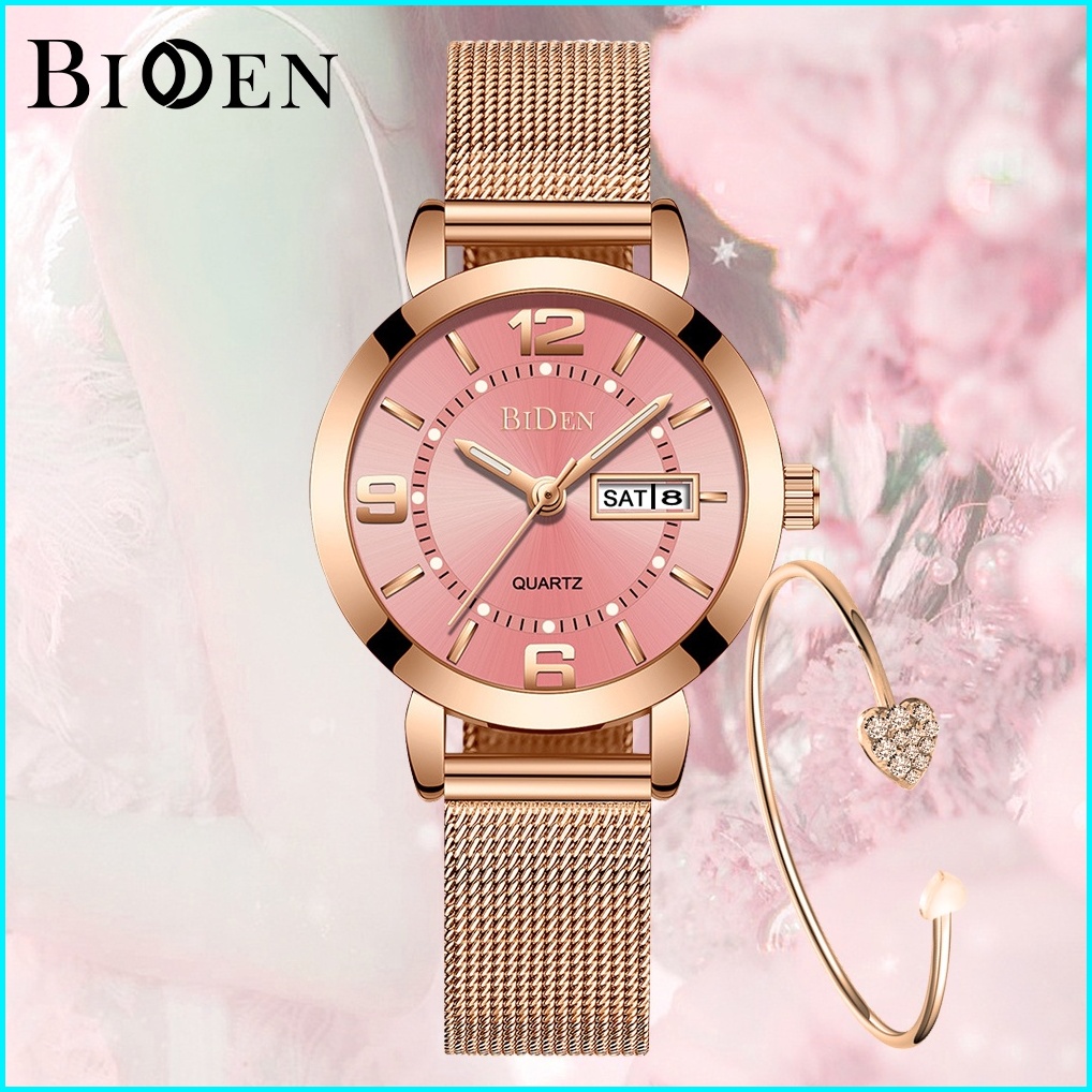 Biden Jam Tangan Wanita Santai Mode Tali Jala Anti Air Kuarsa Otomatis Date Jam Tangan Cewek