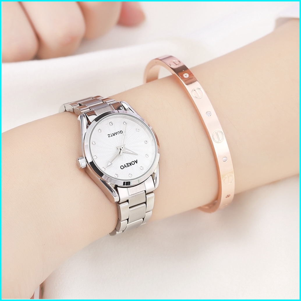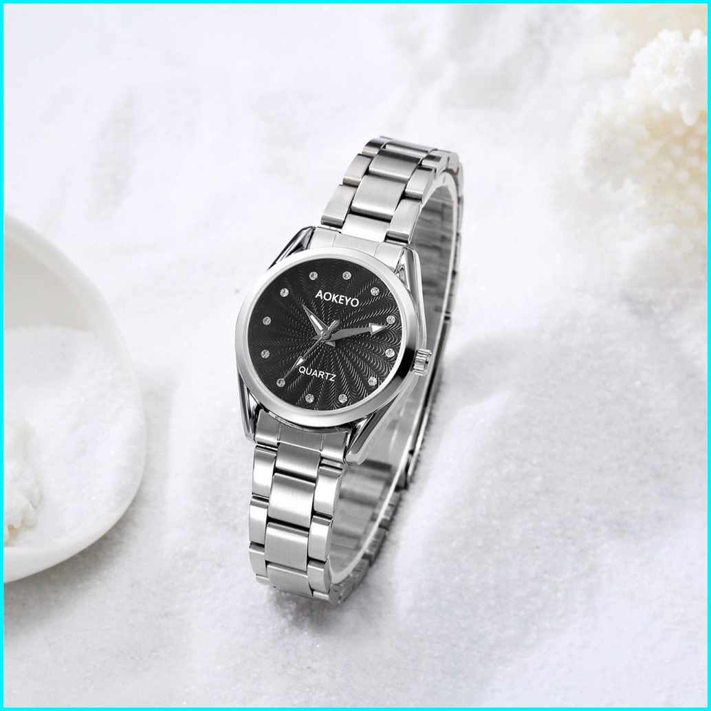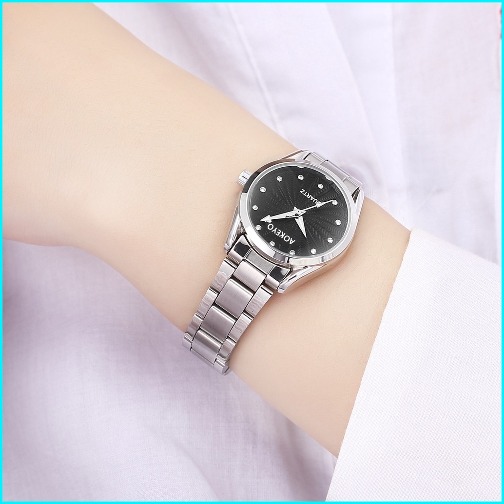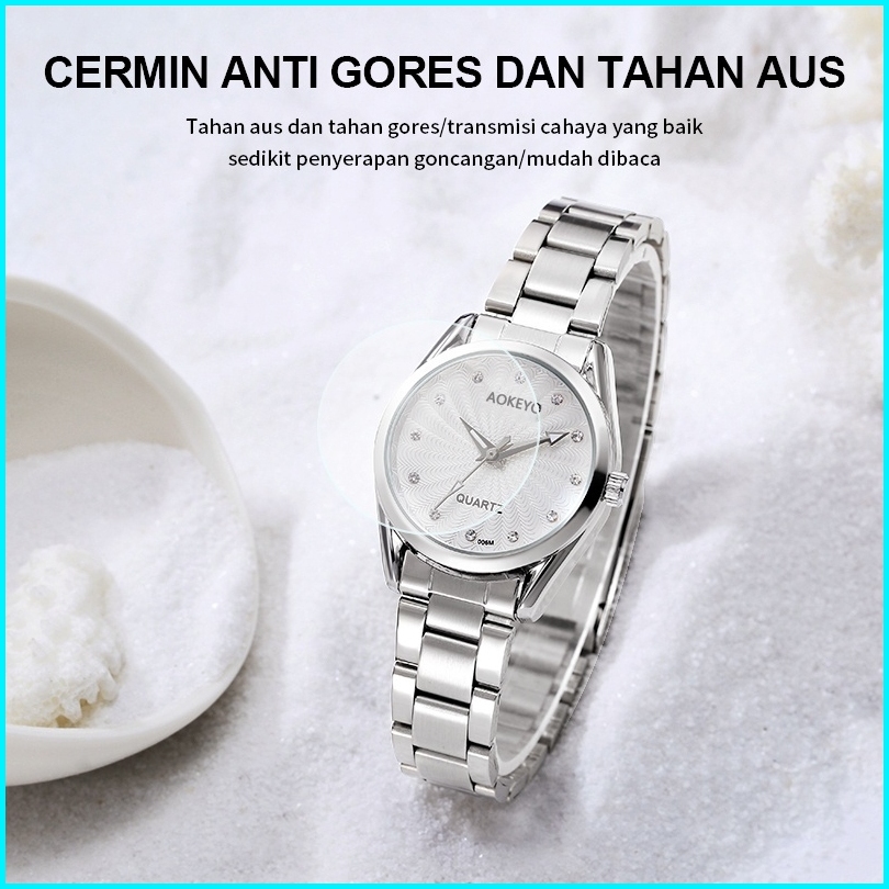 Aokeyo W579 Jam Tangan Wanita Original Tahan Air Santai Mode Stainless Steel Jam Tangan Cewek Free Box Kartu