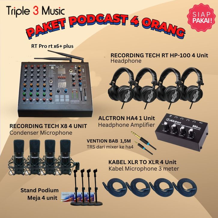 Paket .cast 4 orang Recording tech Pro RTX6 PLUS + Mixer USB WITH Headphone