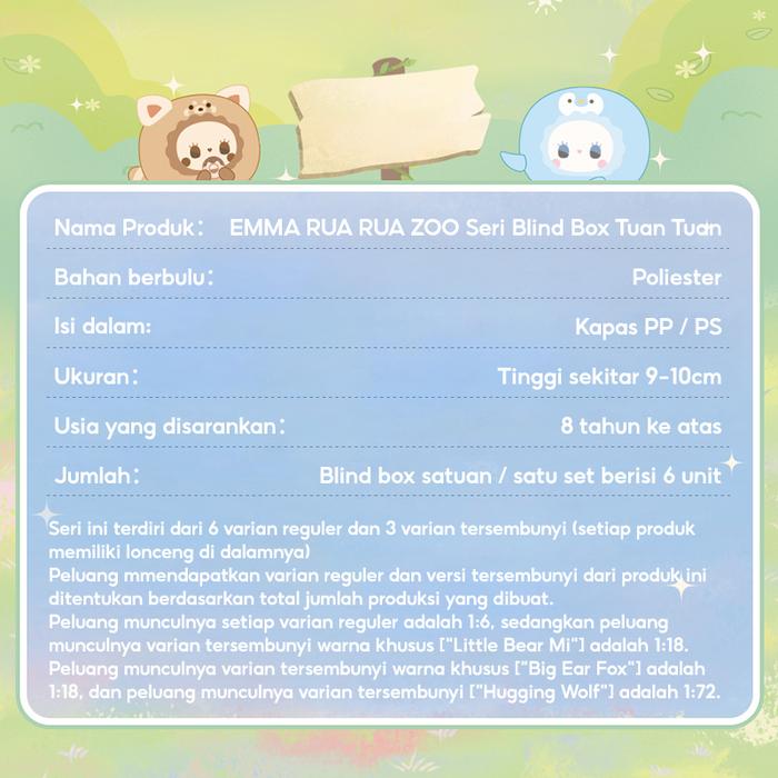OHSOME EMMA Blind Box Gacha Set Koleksi Figure EMMA RUA RUA ZOO TUAN TUAN Plush Keychain Series (1/6) - PRODUK RANDOM