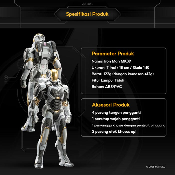 Oh!Some ZD Toys Marvel Iron Man Mark 39 Action Figure Patung Pajangan Figure Ironman Mark 39 MK39 XXXIX 1/10 Scale Anak