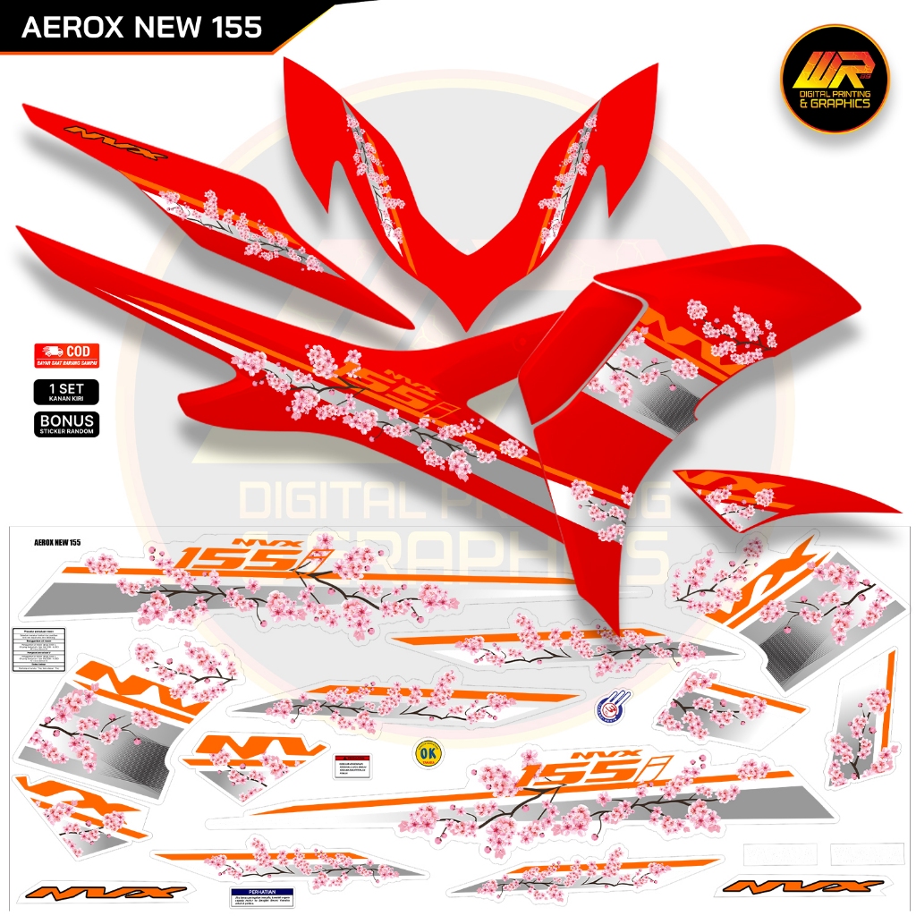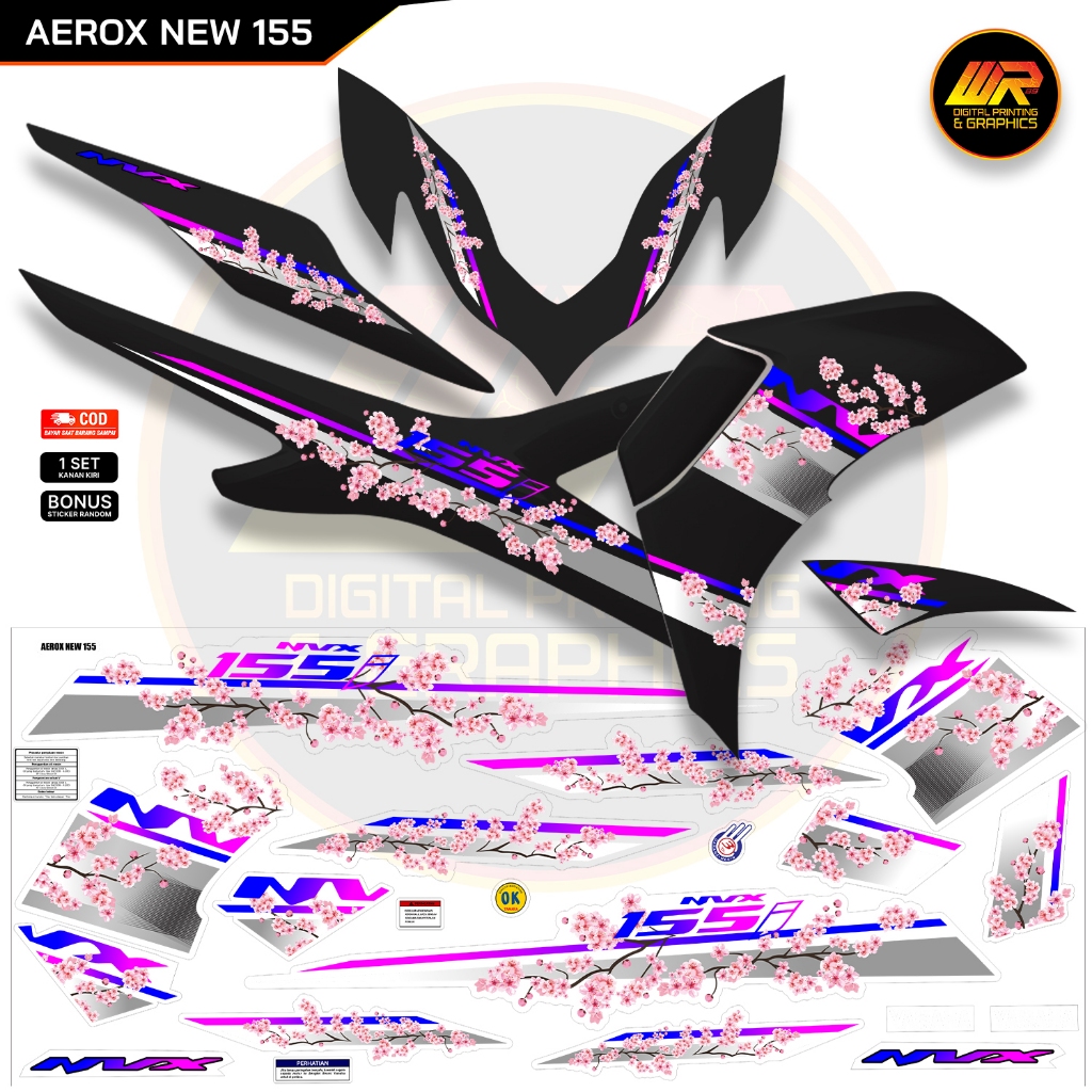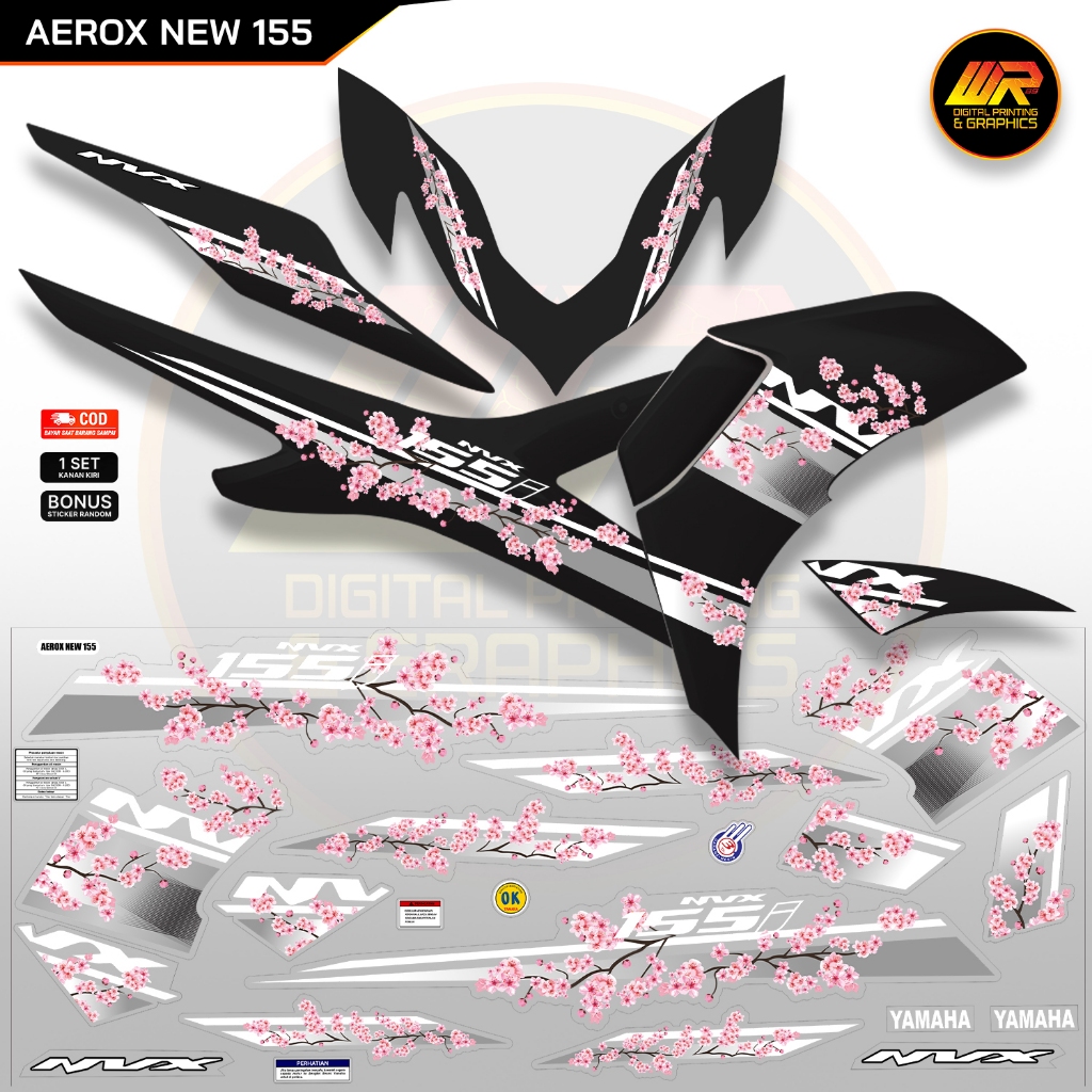 Striping Aerox New Design Terbaru Motif Bunga Sakura Bahan Bening Transparan