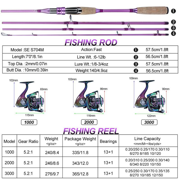 2.1M 4 Bagian Pancing Berputar + Reel Pancing Set 13 + 1BB 5.2: 1 Rasio Gigi Roda Pancing Combo