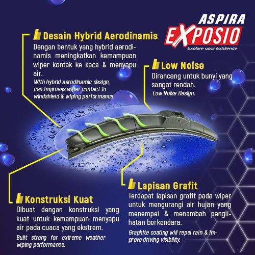 Wiper ade Hybrid Graphite Aspira Exposio Vios, Xenia, Agya, Ayla, Avanza, Alphard, Vellfire Ukuran