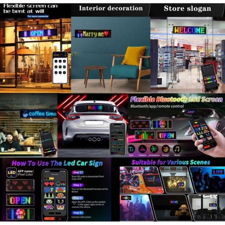 TEEKA Led Matrix Panel Mobil Sn Source uetooth Lampu RGB Flexie Led Car Screen Untuk Jendela Mobil