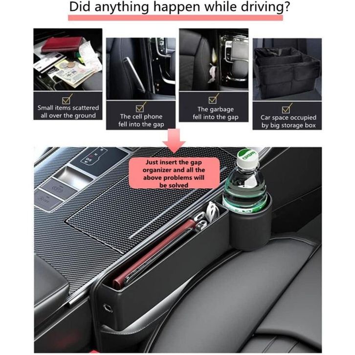 2PCS Tas Penyimpanan Celah Tempat Duduk Mobil dengan Tempat Gelas Multifungsi Celah Tempat Duduk
