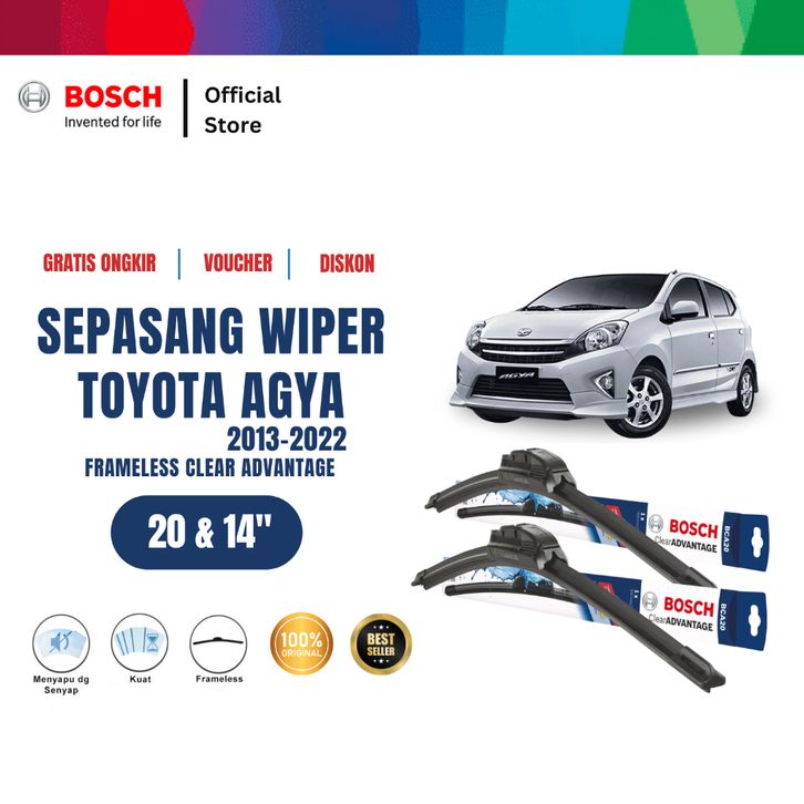 Bosch Sepasang Wiper Mobil Toyota Agya 3-222 Frameless New Clear Advantage 2 Dan 14 Inci