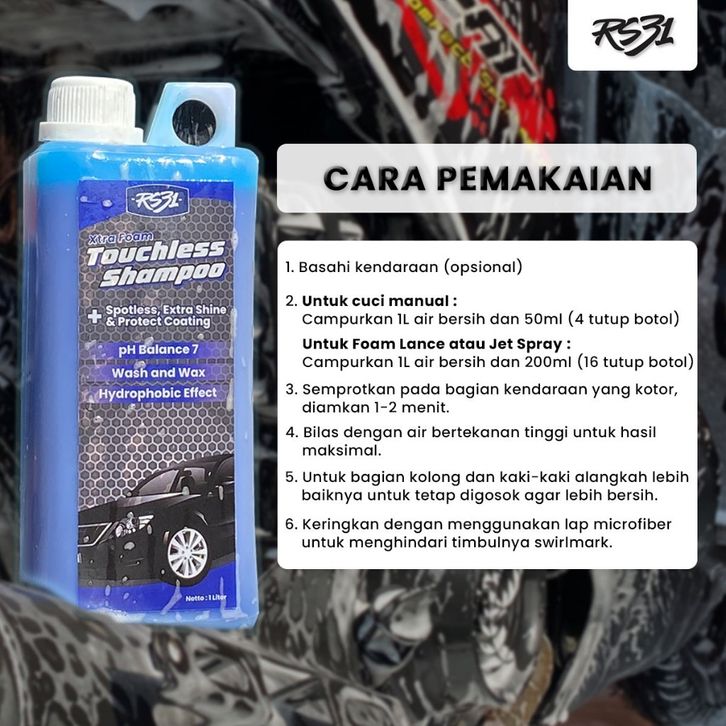 RS31 Touchless Shampoo, Sampo Sabun Cuci Kendaraan Pembersih Bodi Mobil Motor Tanpa Sentuh, Xtra